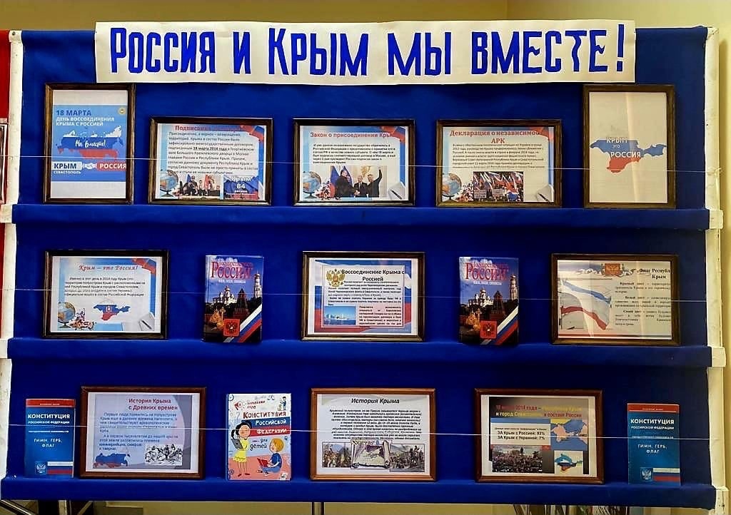 15 марта в Фойе центральной библиотеки работники детско — юношеской библиотеки оформили тематическую выставку посвященное присоединении Крыма к России. Всех кто интересуется историей возвращения Крыма в состав России прошу посетить ДЮБ. Здесь вы сможете посмотреть видео ролик и прочитать про историю Крыма.